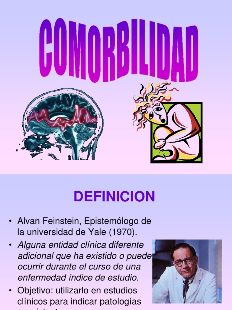 Comorbilidad. Fenstein en 1970 y que se refiere a dos conceptos. En medicina el término comorbilidad se refiere a enfermedades y o a diversos trastornos que se añaden a la enfermedad inicial. Comorbilidad f plural comorbilidades medicine comorbidity quotations.