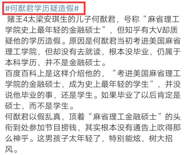 何猷君学霸人设崩塌 也被曝学历造假 曾内涵何超莲学历 腾讯网